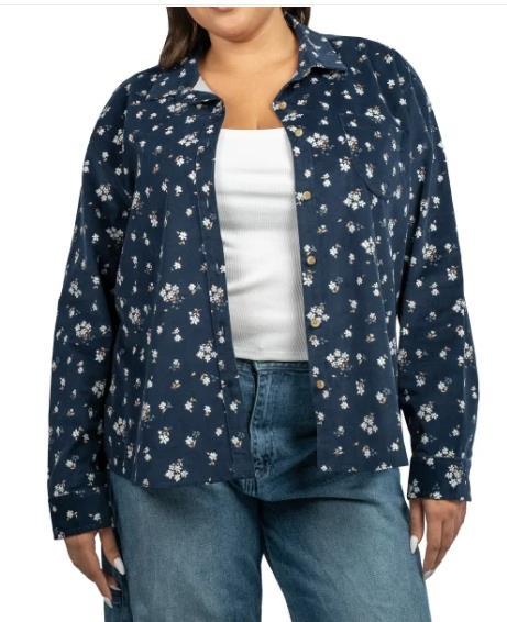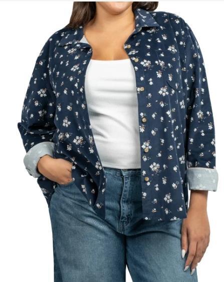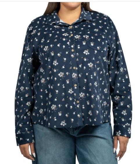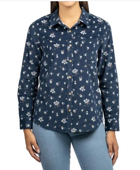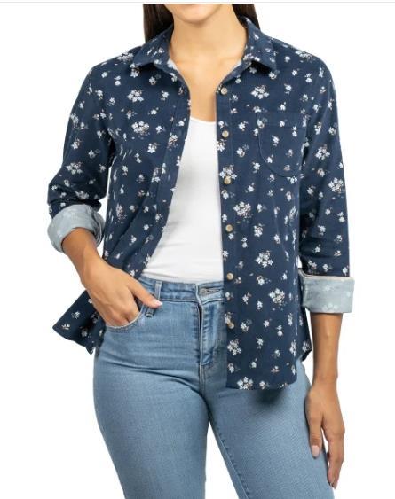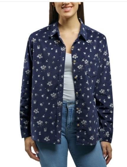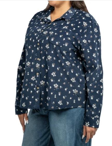 - Jachs Womens Shirt Navy Blue Floral Girlfriend Button-Up Long Sleeves Stretch