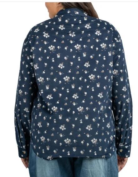 Jachs Womens Shirt Navy Blue Floral Girlfriend Button-Up Long Sleeves Stretch