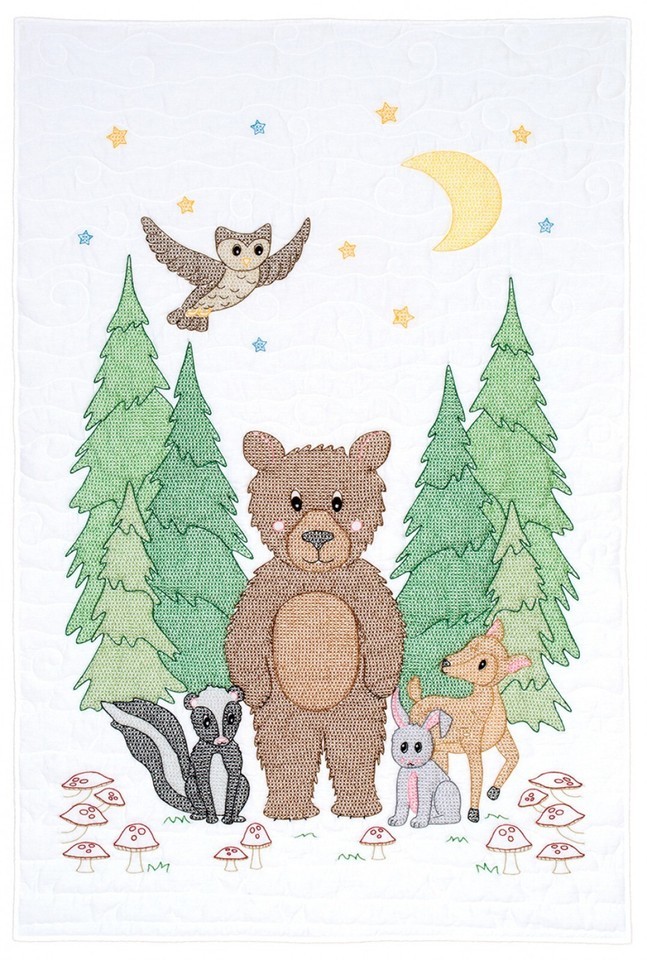 Jack Dempsey Needle Art Woodland Bear Crib Cribile Top.