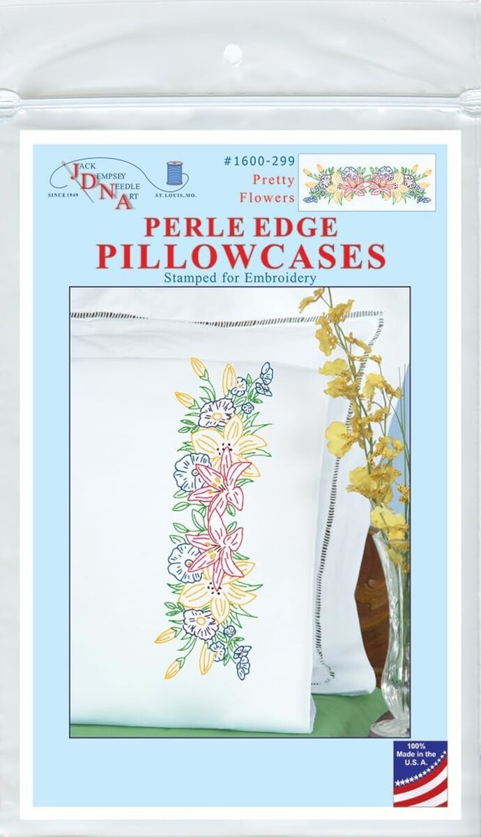 - Jack Dempsey Needle Art Pretty Flowers Perle Edge Pillowcases