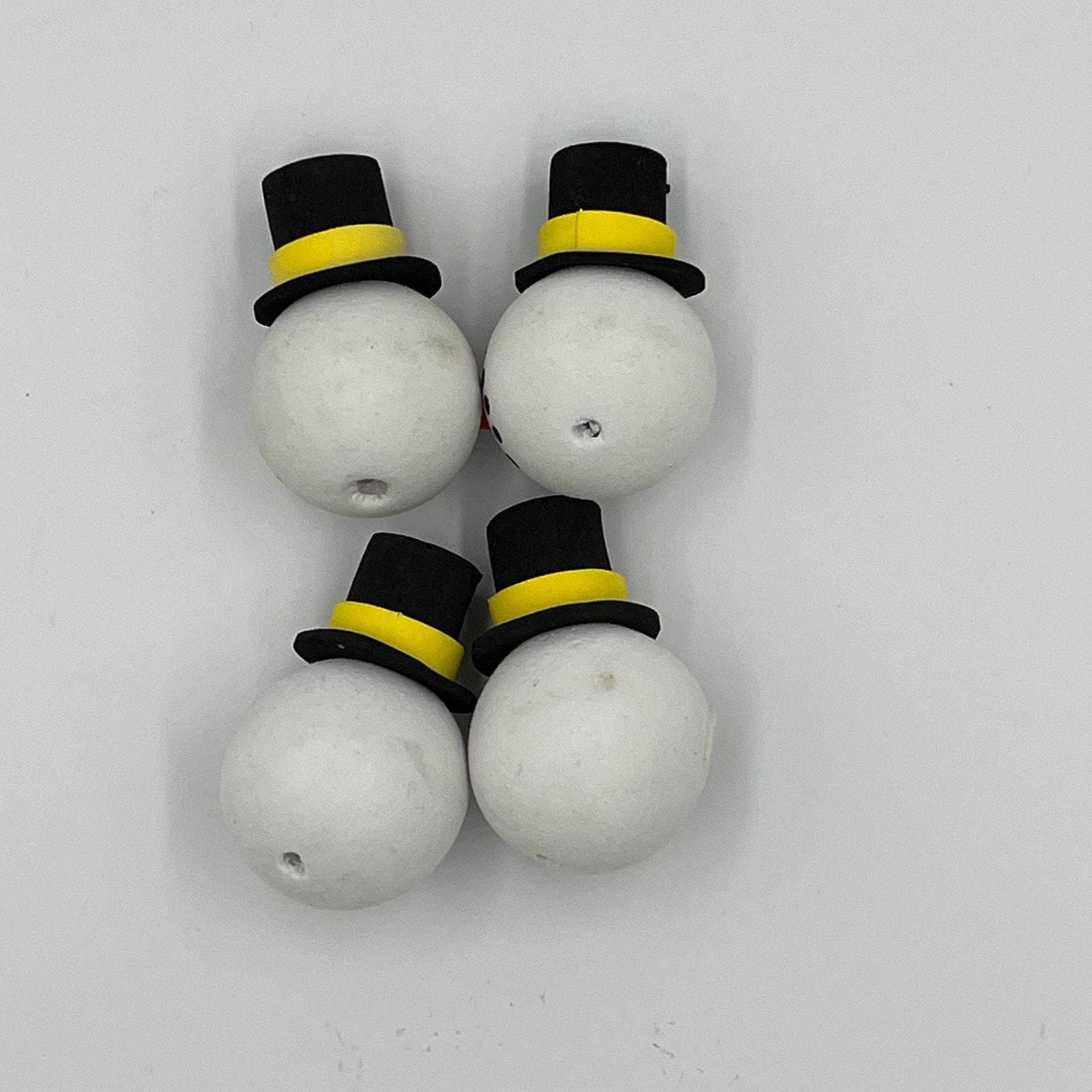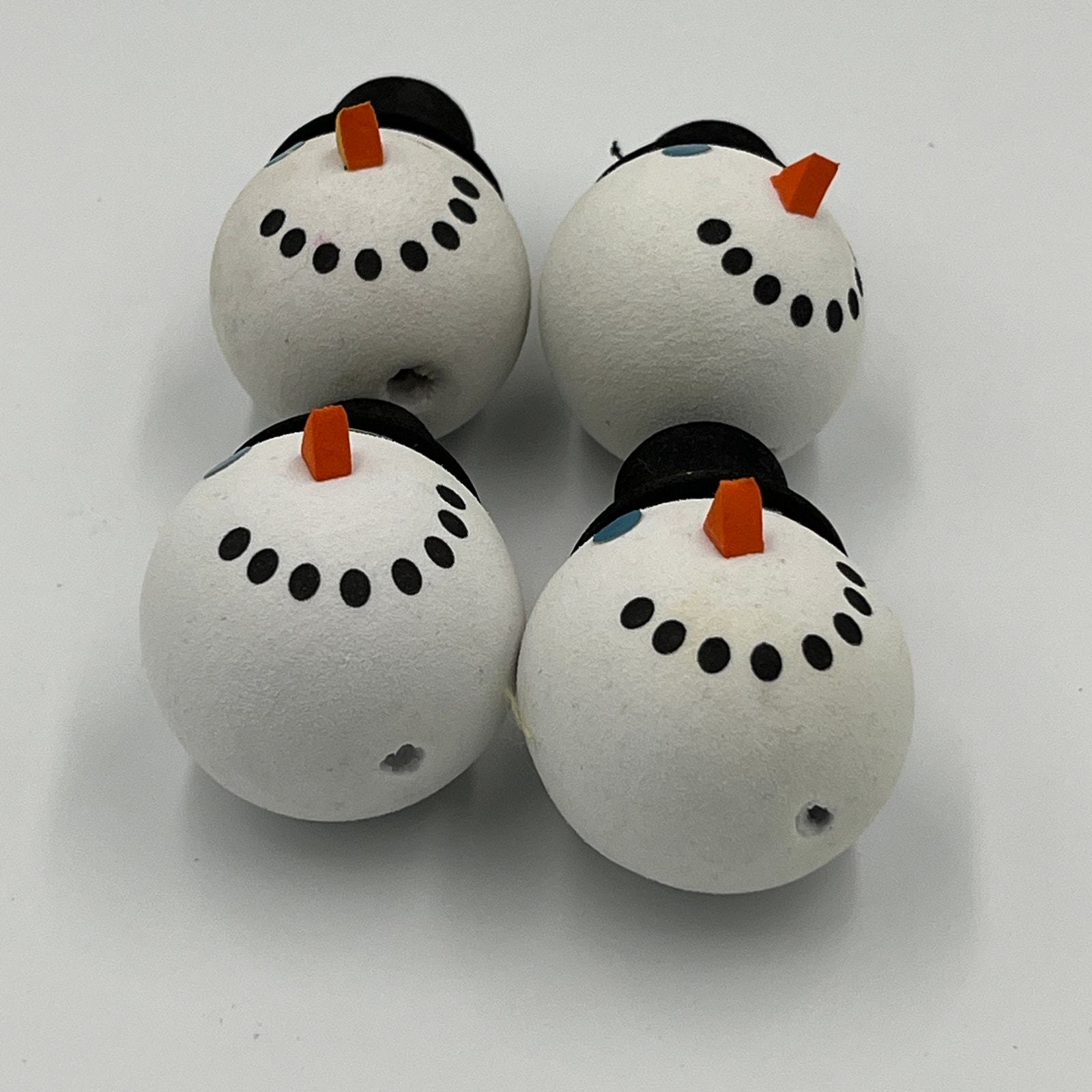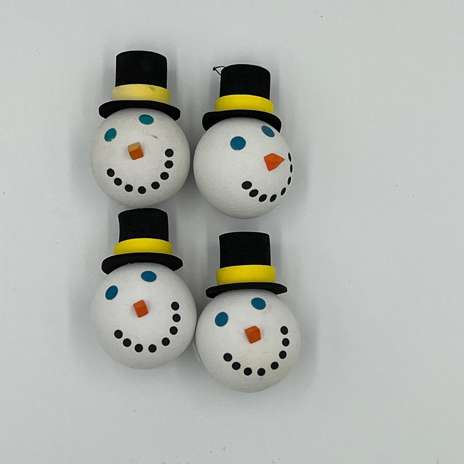 Jack in the Box Snowman Antenna Balls. All four are in good condition and may have a few dirt spots on them. See pictures for details. Could be used a ornaments or pencil toppers.