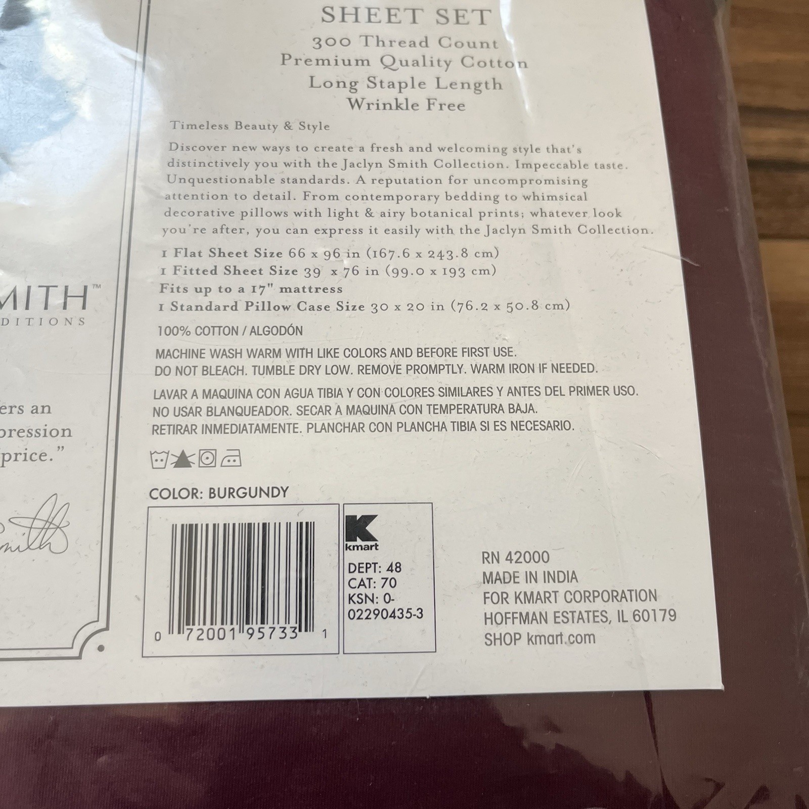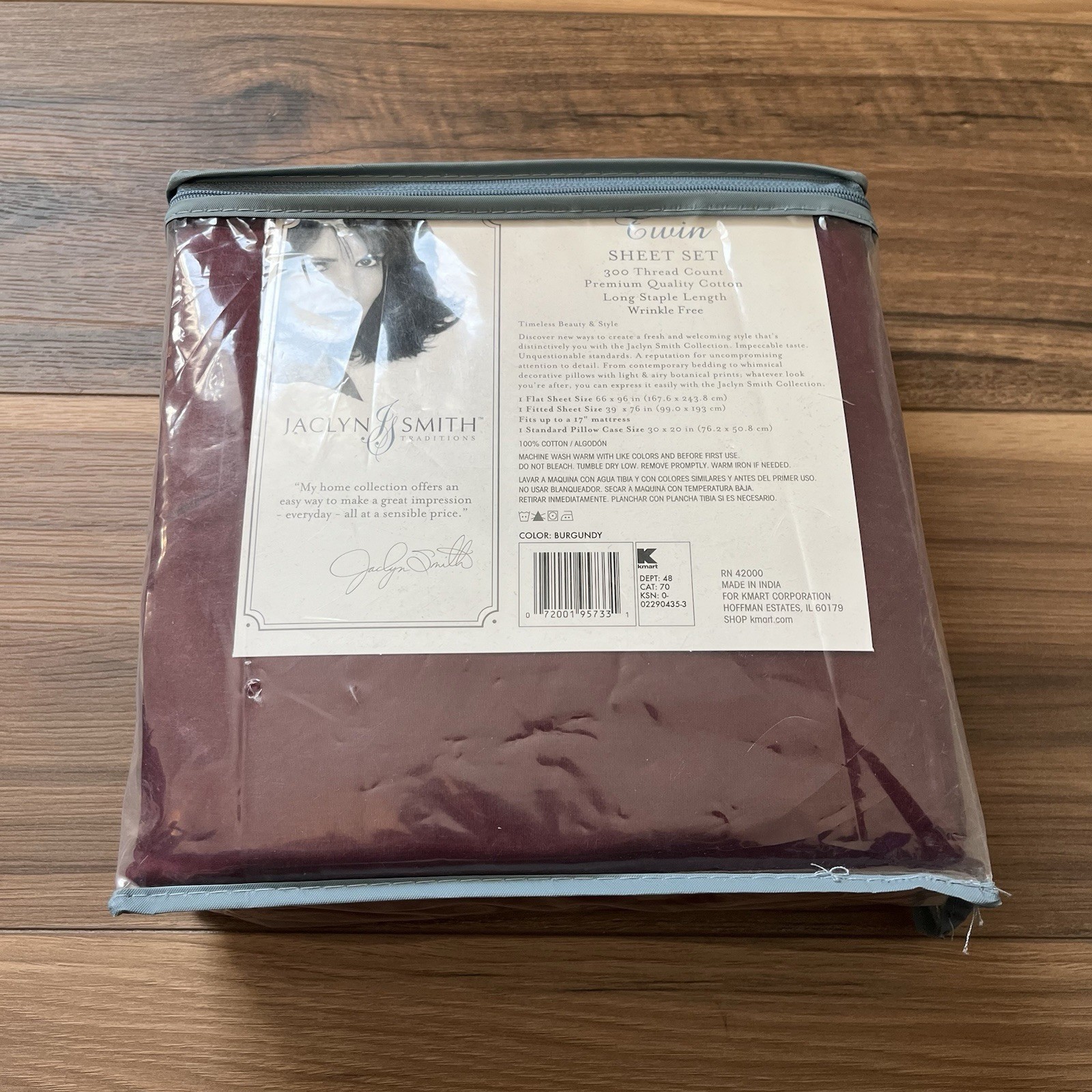 - Jaclyn Smith Kmart Twin Sheet Set 300 Thread Count - Burgundy New In Package