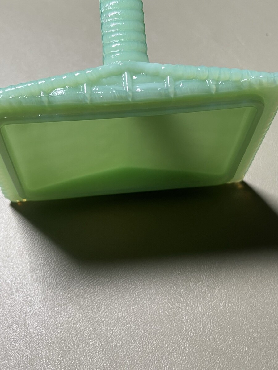 Jadeite, Vintage Westmoreland Green Glass Basket, Picnic Basket, Candy Dish