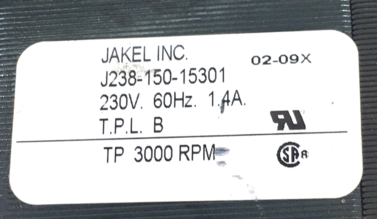Jakel J238-150-15301 Draft Inducer Motor 119404-00 0131G00000P 230V used #MS195