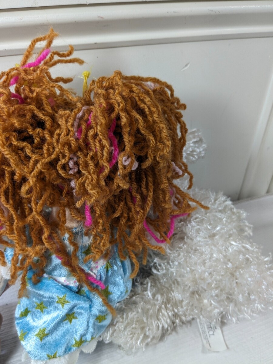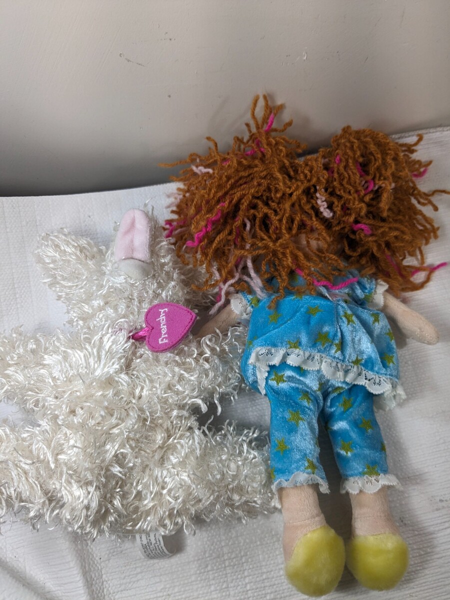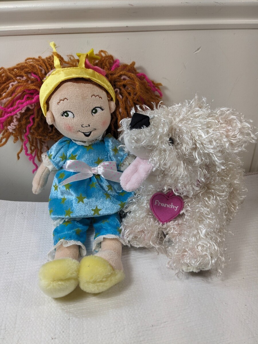Includes Fancy Nancy in blue pajamas and white Frenchie dog. Nancy is missing a star from her crown. Good condition. See pics.