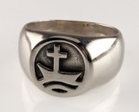 Beautiful Sterling Silver James Avery Band Ring Features Boat in water with Large Cross