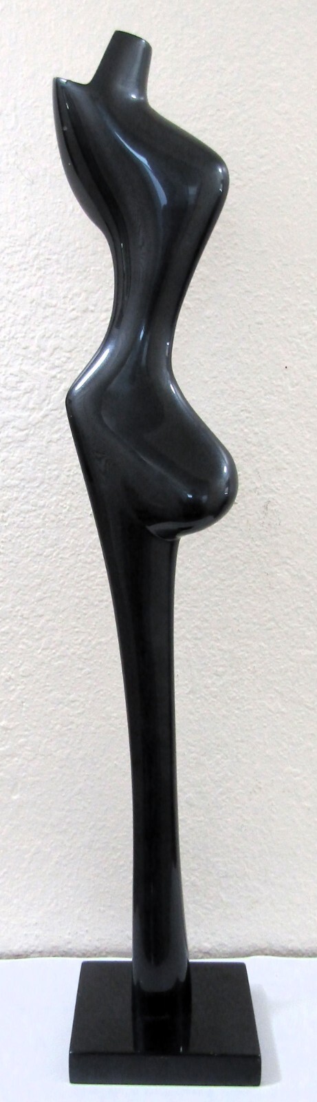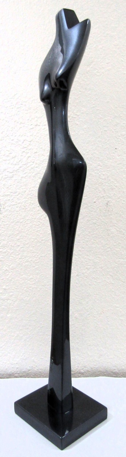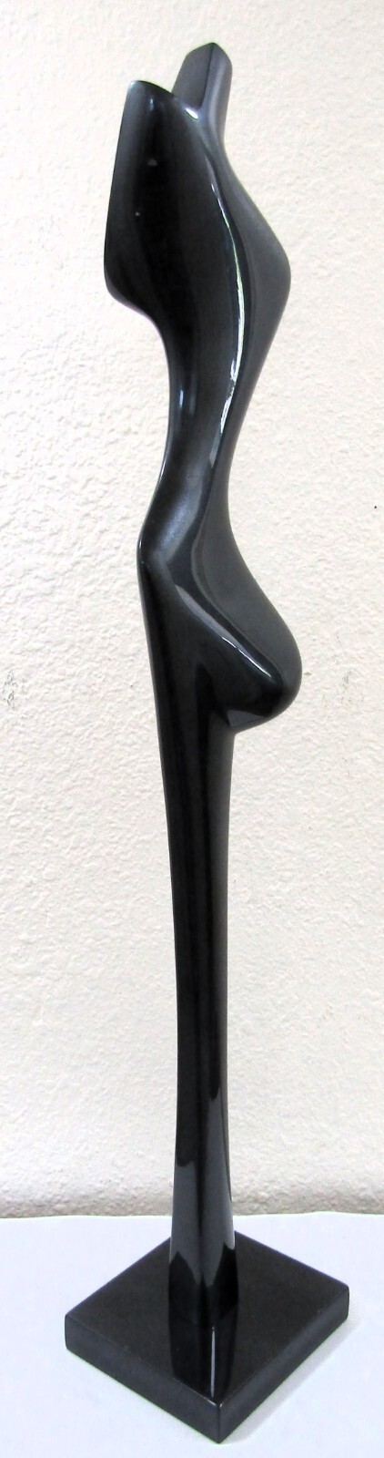 The James Myford Aluminum Sculpture "Single Elongated Form" in dark blue from 1999 is an abstract statue of a woman figure. This large-scale sculpture is an original piece designed by the artist James Myford during the 1990s. Made from aluminum, this sculpture showcases Myford's striking style and theme of art, making it a unique and captivating addition to any art collection.