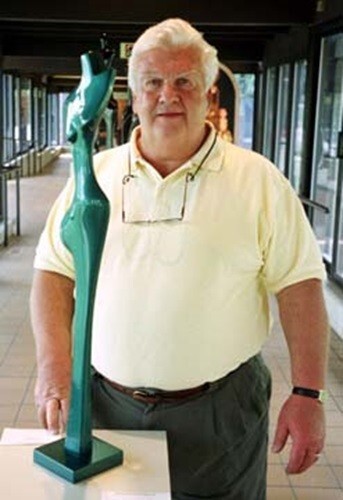 The picture shows "James C. Myford of Pine Township stands with "Single Elongated Form" at a recent show at the Hoyt Institute of Fine Arts, New Castle" The Herald, Sharon, PA from June 14, 2001.