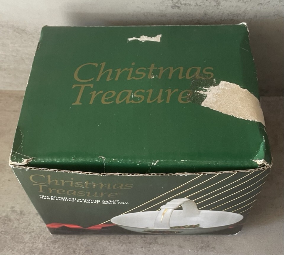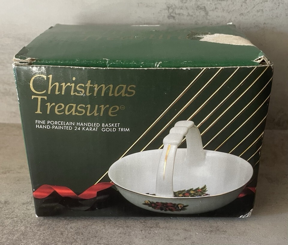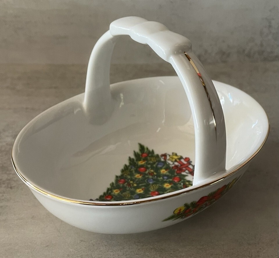 - Jamestown China Christmas Treasure Porcelain Basket w/ Handle Tree Design & Box