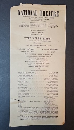 January 29 1945 National Theatre Programme -FRANZ LEHARS - The Merry Widow
