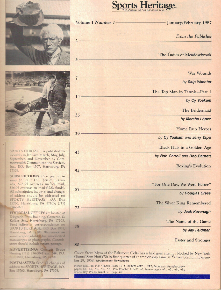 - January February 1987 Sports Heritage Magazine NFL Football Black Hats Charter