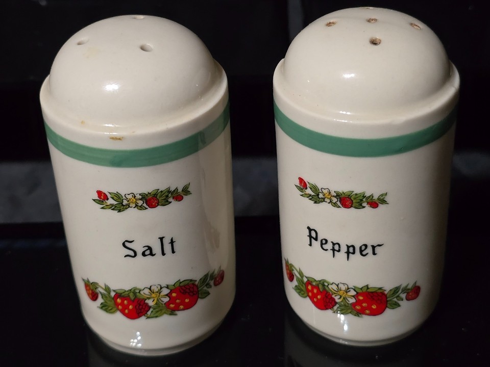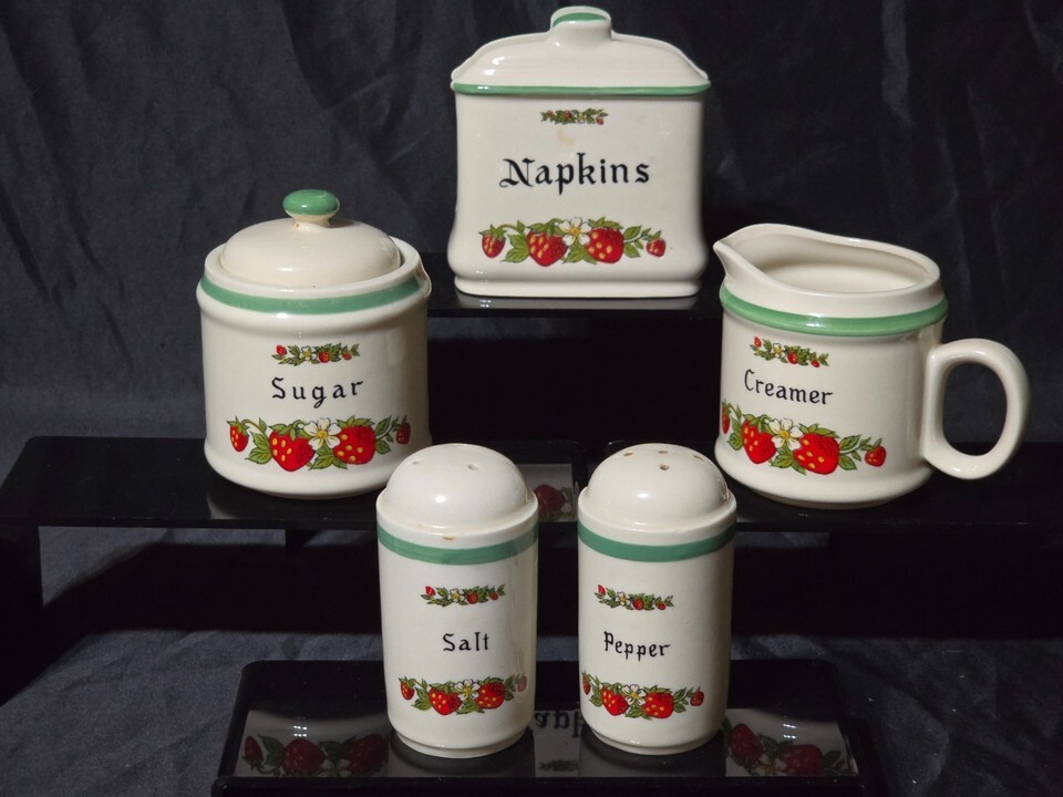 - Japan STRAWBERRY HOSTESS SET Creamer & Sugar + Lid, Salt & Pepper, Napkin Holder