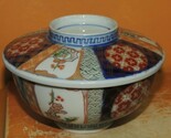 - Japanese Arita 5" Bowl with Lid Red Blue Green Meiji 19th Imari RED Hizen mark