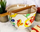 Ebros Japanese Design Ceramic Ramen Noodles Bowl Chopsticks Set Spring Flower Bloom