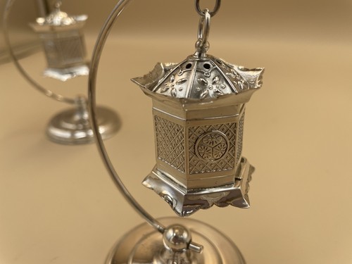- JAPANESE STERLING SILVER HANGING PAGODA SALT & PEPPER SHAKERS PAIR