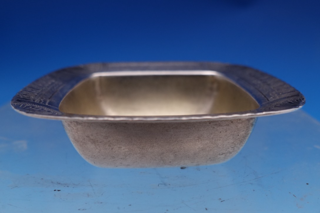 Gorgeous Japanese by Gorham sterling silver salt dip featuring a bright-cut border and lightly gold washed interior. It is marked #1465.