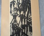 Le produit est une estampe sur bois chinoise japonaise presentant un dessin en noir et blanc de personnes tenant des parapluies, creee par Gihachiro Okuyama. Cette piece met en valeur la culture et l'artisanat japonais traditionnels, avec une provenance authentique du Japon. L'impression n'est pas modifiee et constitue un objet de collection precieux pour ceux qui s'interessent aux cultures et ethnies asiatiques.