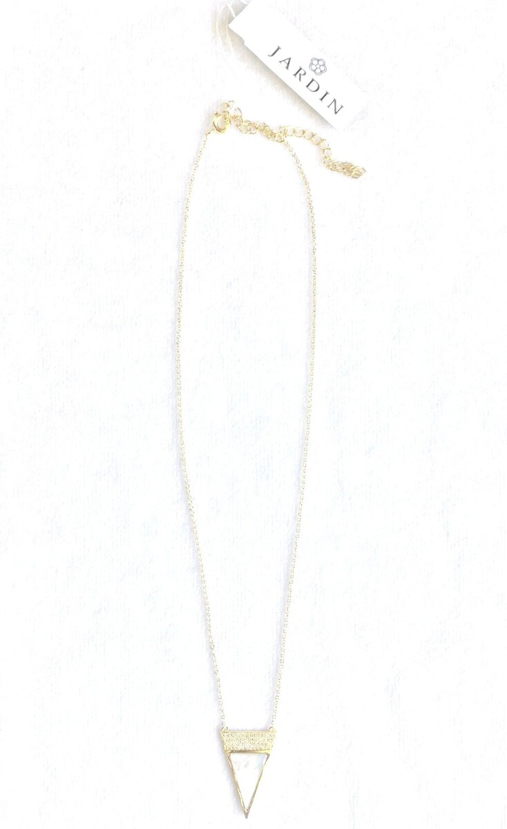 This is for a brand new Jardin Pave Cubic Zirconia 18KT Gold Plated Triangle Necklace, 16" + 3" Extender