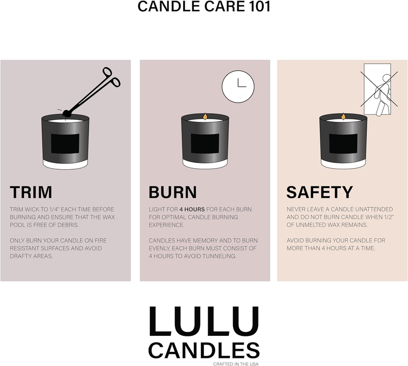 Trim wick to 1/4 inch before each use, keep away from direct sunl
