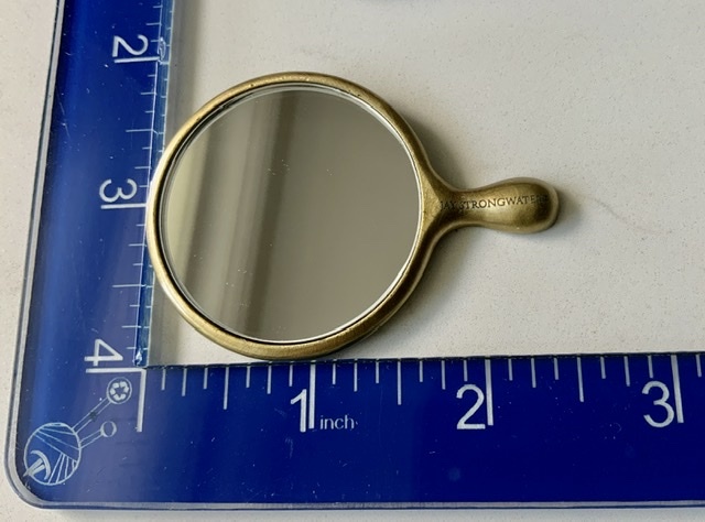 This is a mini-sized mirror. Please see the photo showing the mirror next to a ruler for its approximate dimensions.