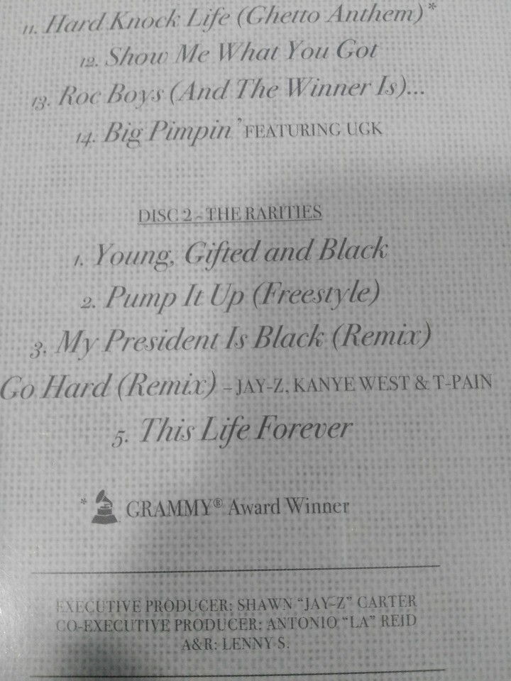 SuperDeluxe-Ausgabe de First- de -Sammlungdeunodelos beste MCsde allelos tiempos undunodeloshombresque In letzter Zeit hat es mehr revolutioniertla historiade die Musik. Es enthalt nicht weniger que elf Nummer-1-Hits, darunter ?Run This Town?, ?Empire State Of Mind?, ?99 Problems?, ?Izzo?, ?03 Bonnie Clyde? (feat. Beyonce), ?Hard Knock Life? und viele mehr. Diese Ausgabe in un Format con einigen Maßende 9x12 wird begleitetdeun tolles Buchde Fotosde weiterde 100 Seiten und un Bonus-CDcon 5 sehr schwierige Themende finden.