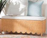 Features: Bohemian Ottoman Bench Constructed from a Metal frame with Natural Rattan and Engineered Wood Scalloped rattan skirt exhibits soothing geometry from every angle Wide, rectangular outline brings cozy seating to any layout Removable cushion padded with foam and upholstered in fabric Timeless Pieces That Elevate Any Spaces Set Includes: One (1) Bench