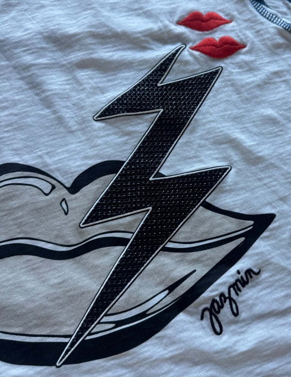 - Jazmin Chebar White Lips print 100% Cotton T-Shirt Size 1 (US Small) NWOT