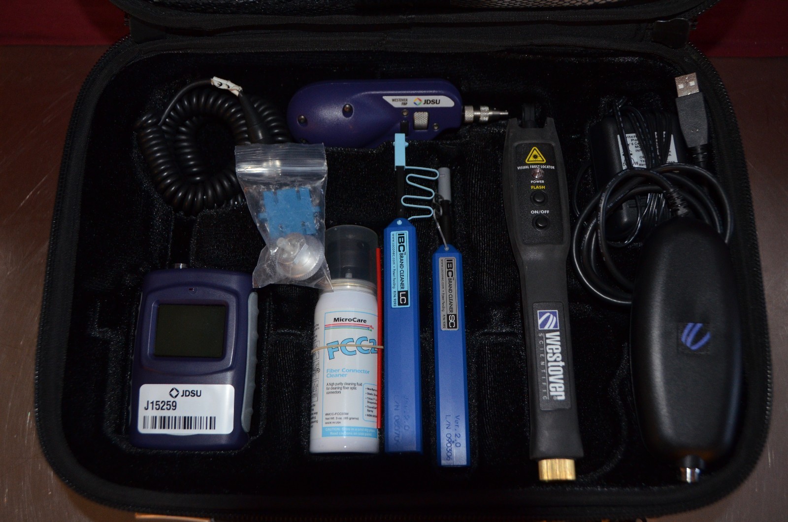 - JDSU Fiber Inspect Clean Test Kit FBP HD3 w/ FFL-100 VFL & Analog to Digital USB