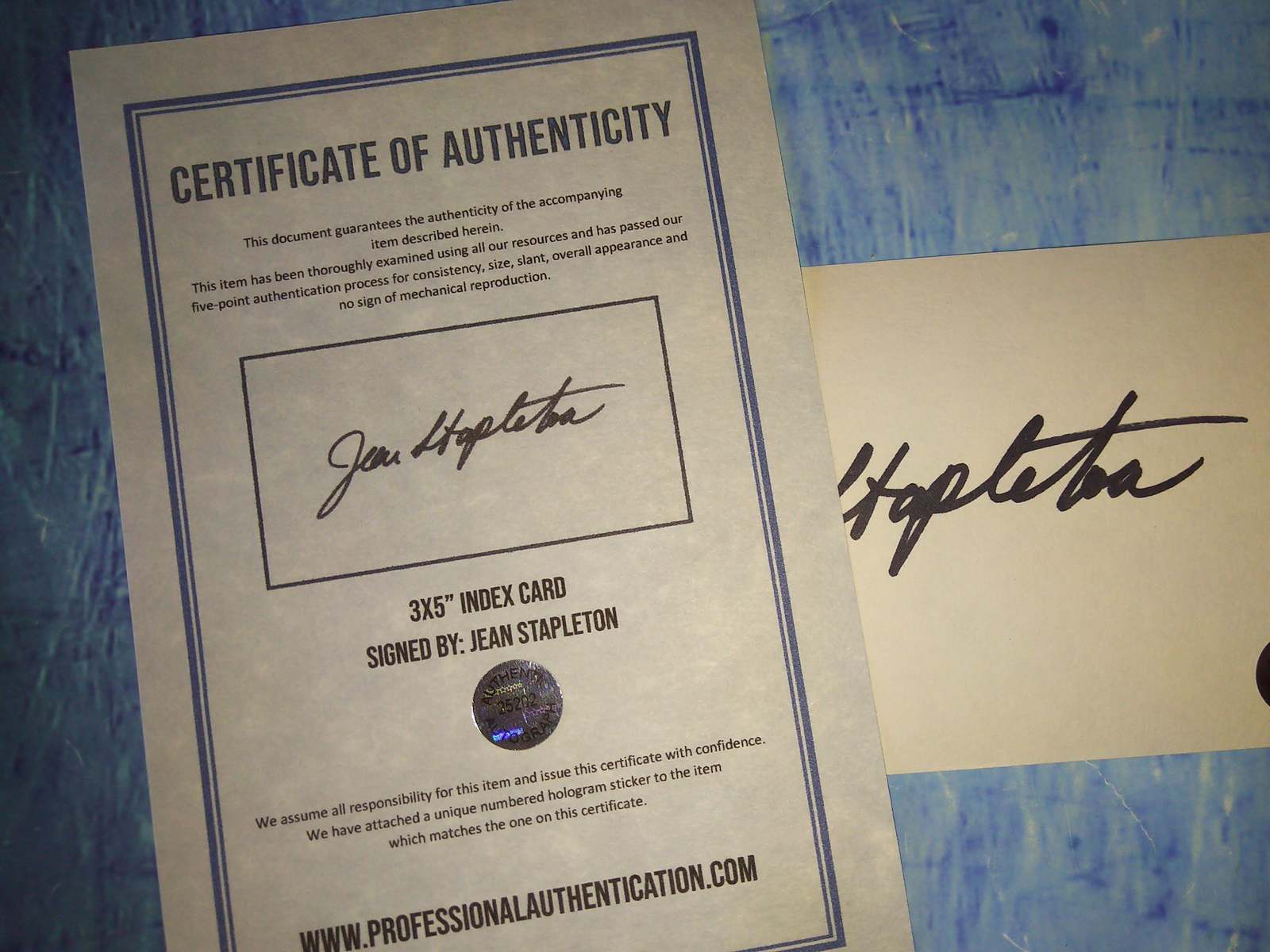 - Jean Stapleton Hand Signed Autograph Index Card COA