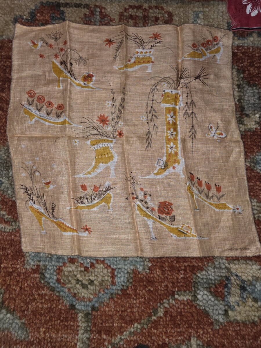 - Jeanne Miller Vintage Peach Pink Cotton Hankie Handkerchief Shoes & Flowers