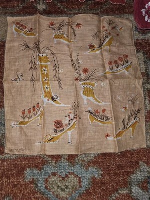 Jeanne Miller Vintage Peach Pink Cotton Hankie Handkerchief Shoes & Flowers
