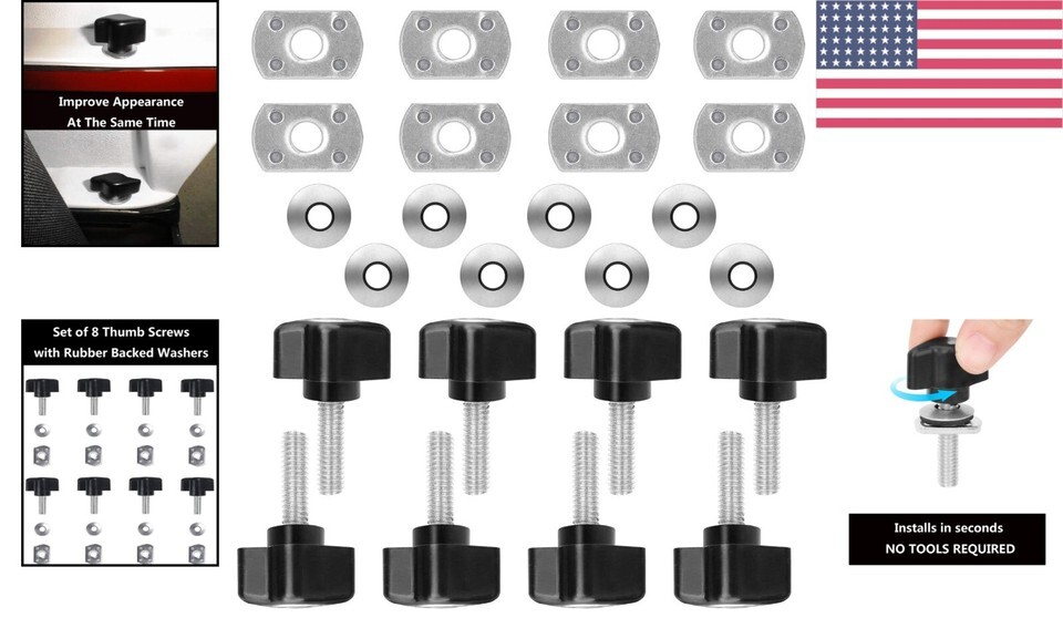 Complete Kit Included: Comes with 8 thumb screws, washers, and nut plates for a hassle-free hardtop removal and installation experience.