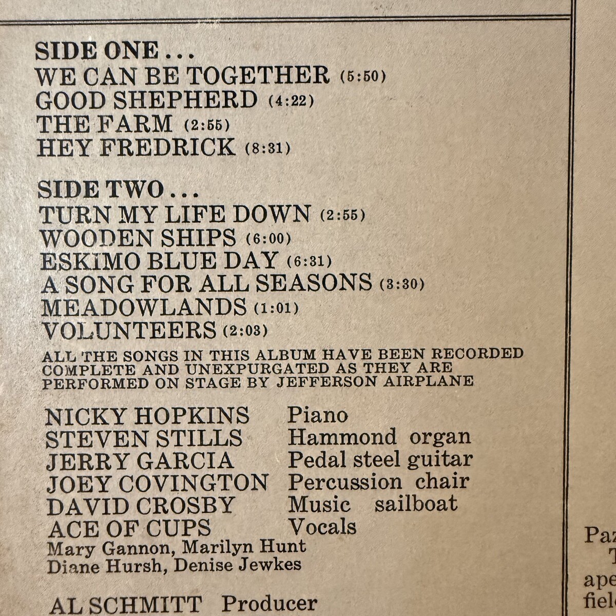 Nicky Hopkins ? piano on "We Can Be Together", "Hey Fredrick", "Wooden Ships", "A Song for All Seasons" and "Volunteers"