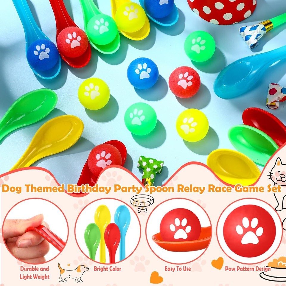 - JellyArch 24 Pcs Dog Themed Birthday Party Game Spoon Relay Race Set Colorful