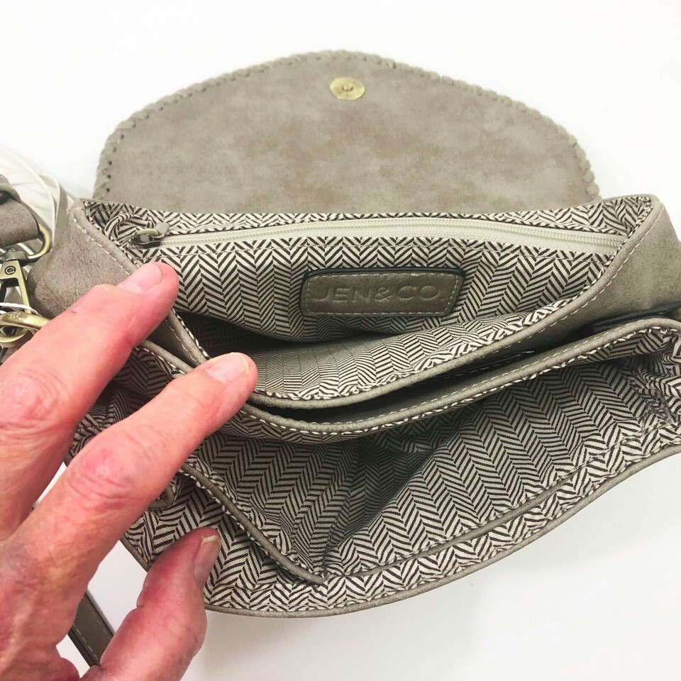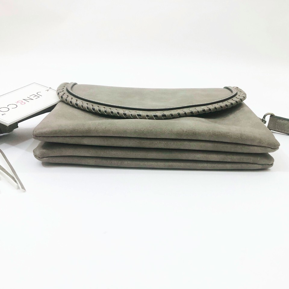 - Jen & C0. Gray Vegan Leather Cross Body Shoulder Bag Sloane 9.5x7x2 inches