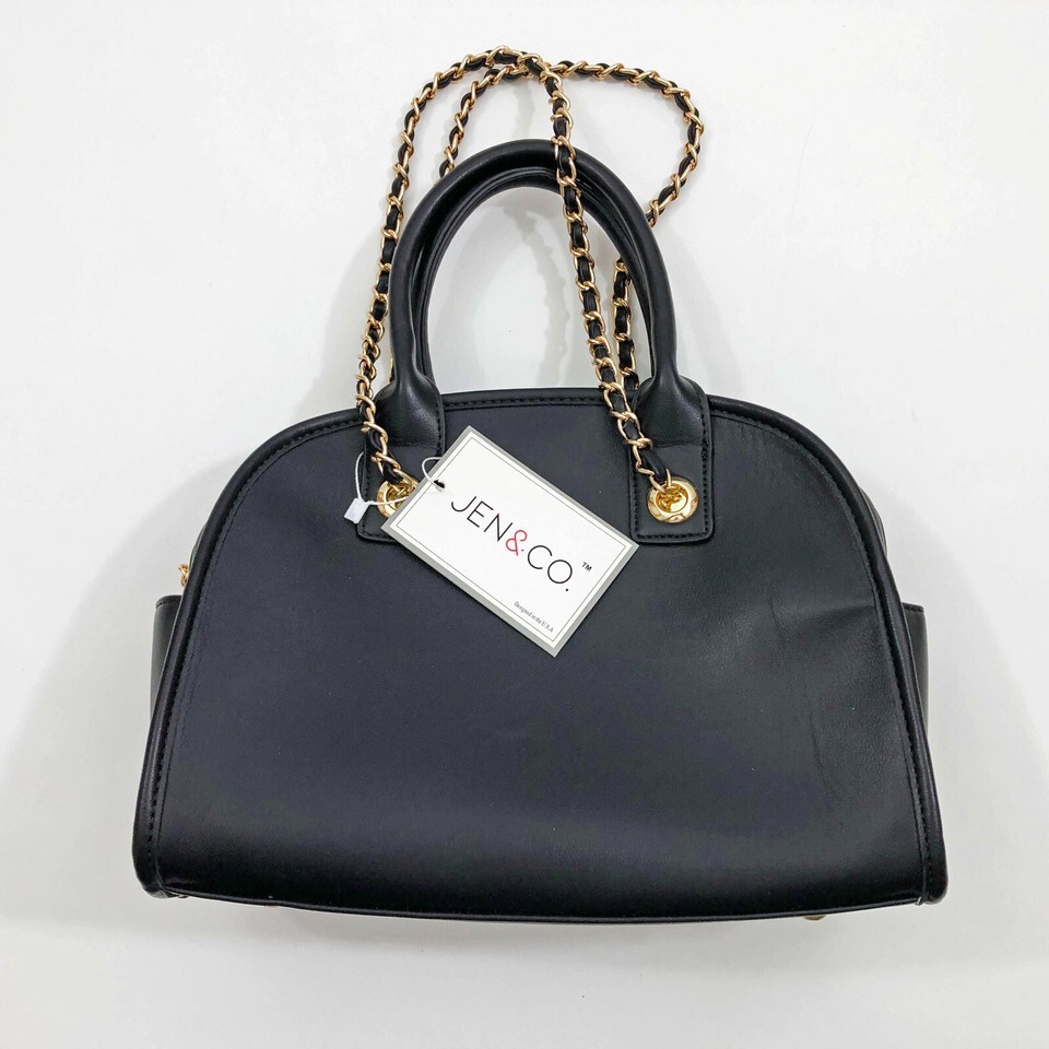 - Jen & Co Beth Dome Satchel Handbag 12x4x9 inches Black Vegan Leather