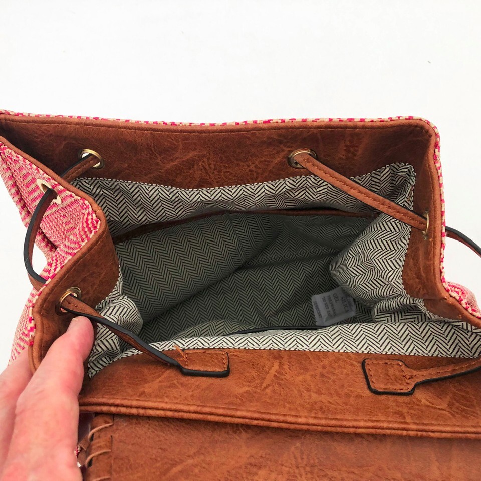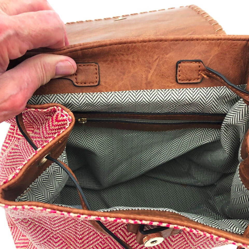 - Jen & Co. Saffron Back Pack 12x12x6 in. Vegan Leather Red & Natural Color