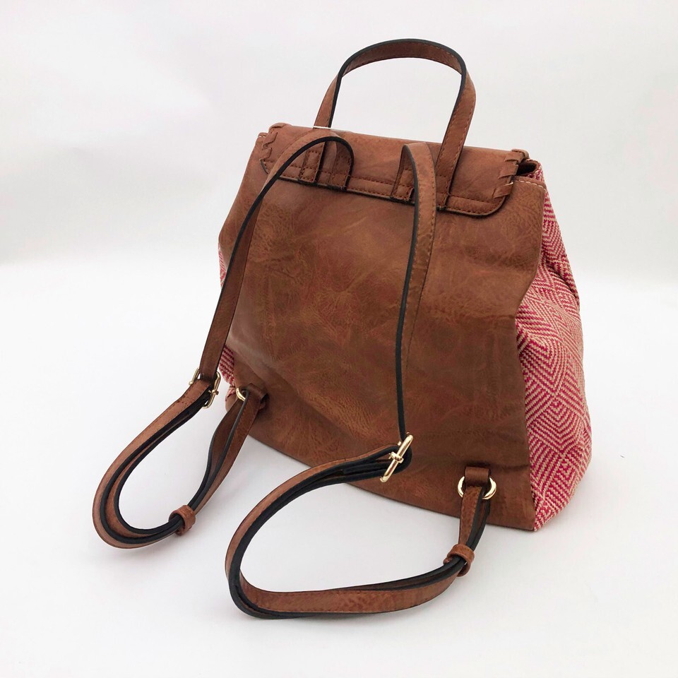 Jen & Co. Saffron Back Pack 12x12x6 in. Vegan Leather Red & Natural Color
