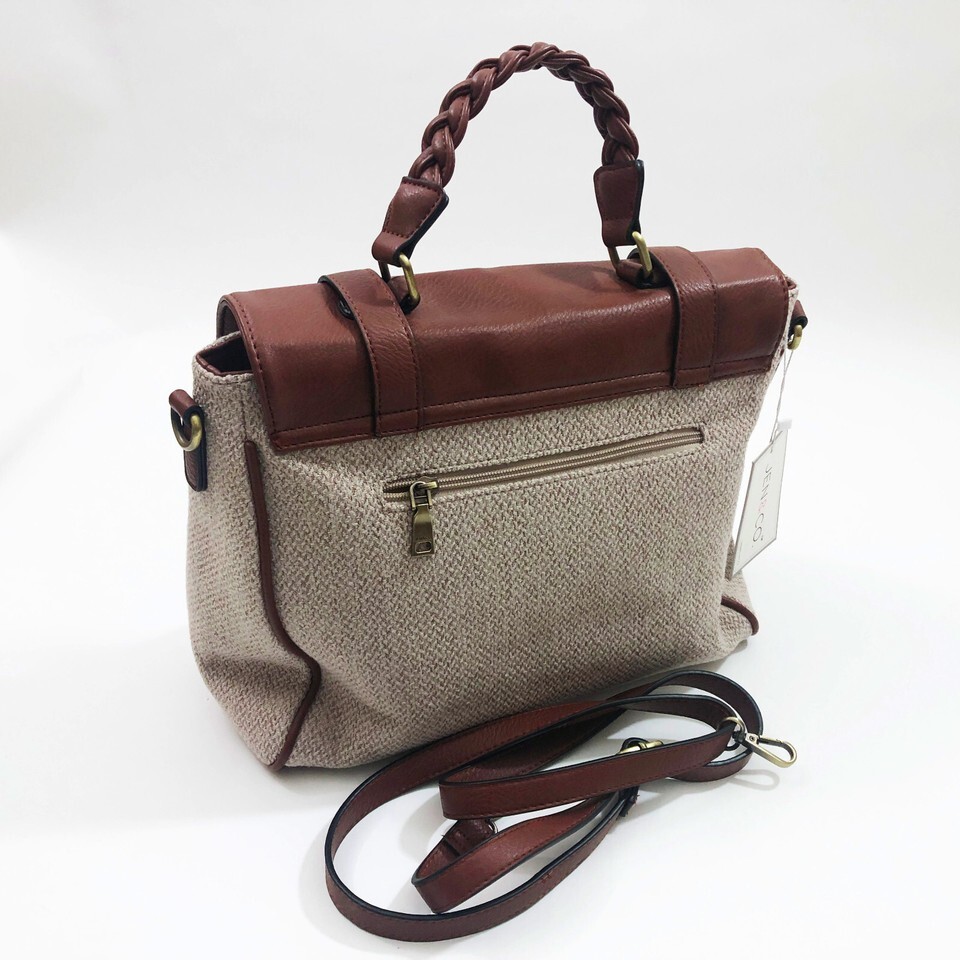 New With Tags,NWT, Sales Sample Jen Co. Satchel, model Harlow "Tribal Embroidered" Southwestern style Aztec embroidery. This satchel style bag with removable cross body strap has a beautiful Vegan leather braided handle and Vegan leather flap over cover. It comes with an adjustable removable cross body strap. The front flap cover has a double magnetic snap closure with a center slide latch closure. The interior also closes with a zipper. The bag is woven sand colored fabric with a colorful tribal, Aztec, Southwestern embroidered design. The back has a zipper close pocket. Inside you'll find a zipper close pocket and 2 open slip in pockets. Vegan (Faux Leather) trim and antique gold hardware make for a chic look. Jen Co. Model Harlow Tribal Embroidered 13x10.5x4.5 inches inches Vegan (faux) leather woven fabric 1 outside center zipper pocket 1 inside side zipper pocket 2 inside slip in pockets Magnetic snap, slide latch and internal zipper closure Removable adjustable cross body strap Antique Gold tone hardware SKU AAA-17-06-24-017 Yes, we combine orders for shipping whenever possible. If did not combine the shipping on your order correctly when we combine the items and check the shipping, if it is less than the shipping charges that you paid, we will issue you a refund for the difference.