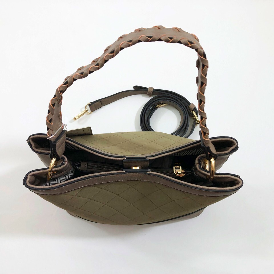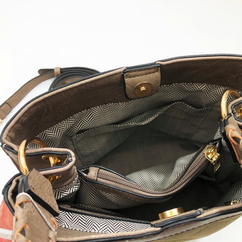 - Jen & Co Satchel Maude 11.5x10x5.5 inches Grey/Green & Taupe Handbag Purse