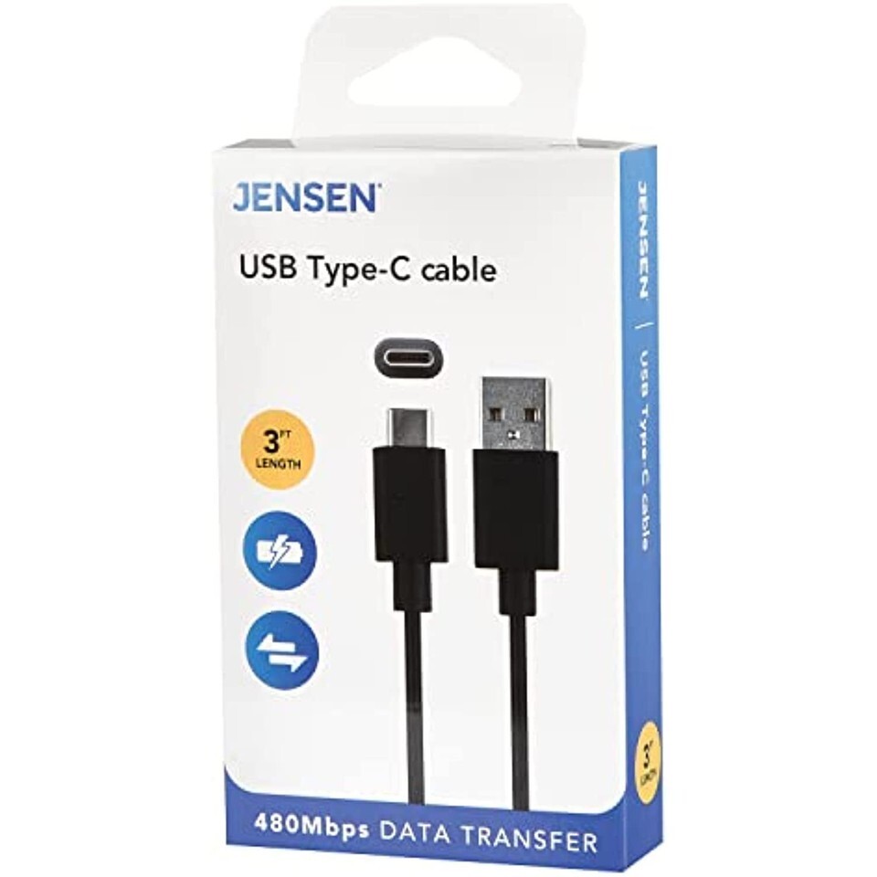 - JENSEN JU832AC3V Charge and Sync USB to USB-C Cable, 3 Ft.
