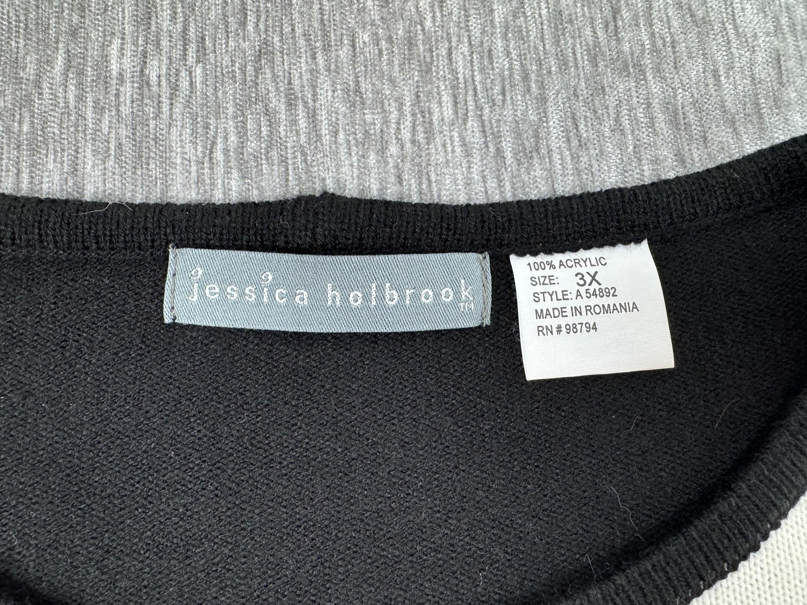 - Jessica Holbrook Sweater Womens 3X Pink Black White Colorblock Pullover Crewneck