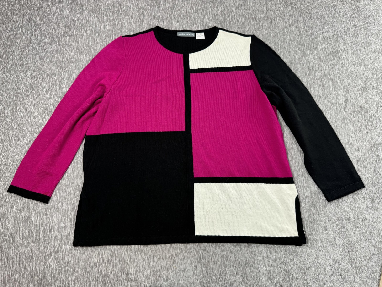 Jessica Holbrook Sweater Womens 3X Pink Black White Colorblock Pullover Crewneck