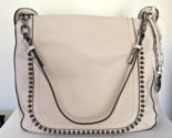 Offered is this New with Tags Jessica Simpson "Kelly Coho" Beige Shoulder Bag. I believe this bag is out of production and it has it's original tags with the original retail price of $108.00 . Features studded detailing along the edges enhanced with studded detailing along its edges, metallic hardware and leopard print material on the interior. Measures approx 12" tall not counting the handes by 13" wide. A perfect size and design for any occasion! Attn: The images make this look a little darker than it actually is due to camera shadows ect..