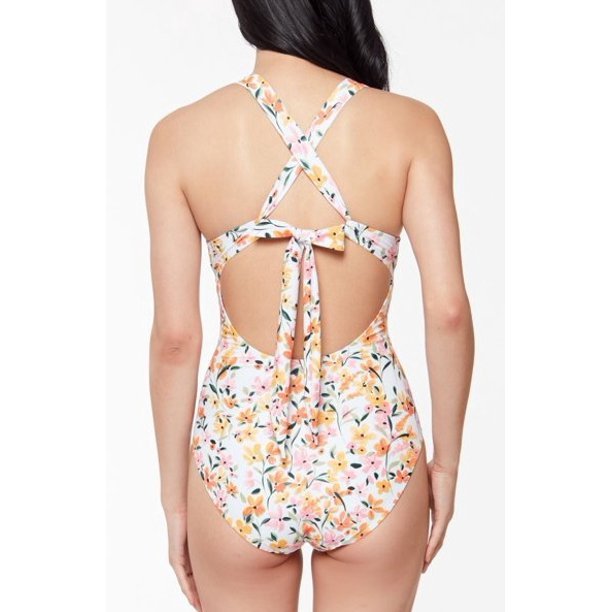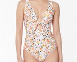 Jessica Simpson SUNSET MULTI Summer Dreaming One-Piece Swimsuit, US Medium Features: A plunging tie-front neckline tops off this dreamy one-piece swimsuit from Jessica Simpson. Lined. Removable cups. Pull-on styling; adjustable straps tie at back. Plunging V-neck; keyhole and tie at center front. Moderate bottom coverage. Style #: SSSD21876 Shell: polyester/spandex; lining: polyester Imported JESSICA SIMPSON Size: M Material: Polyester Color: Pink Floral One Piece Removable Cups Lined Keyhole Deep V Neck Tie Stretch