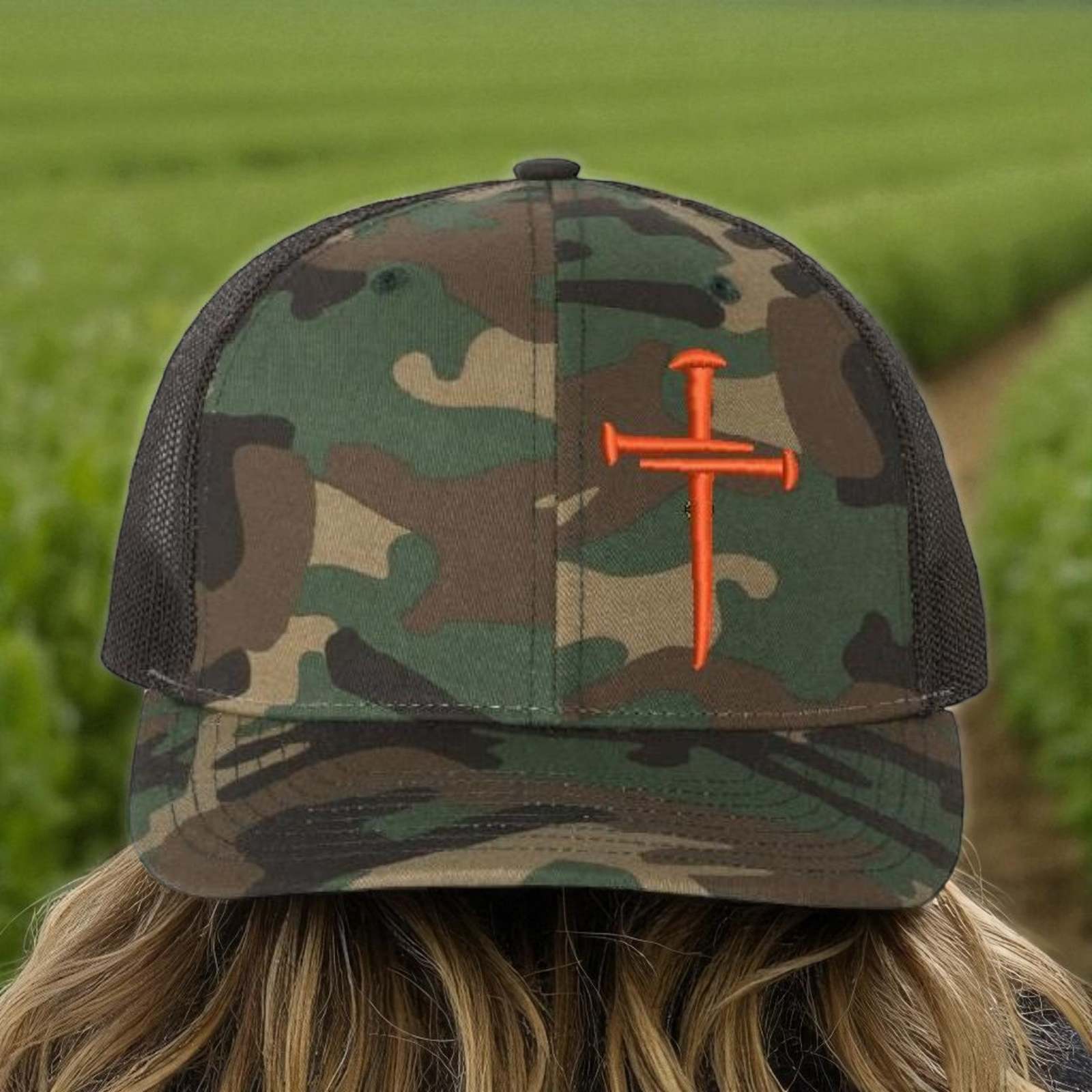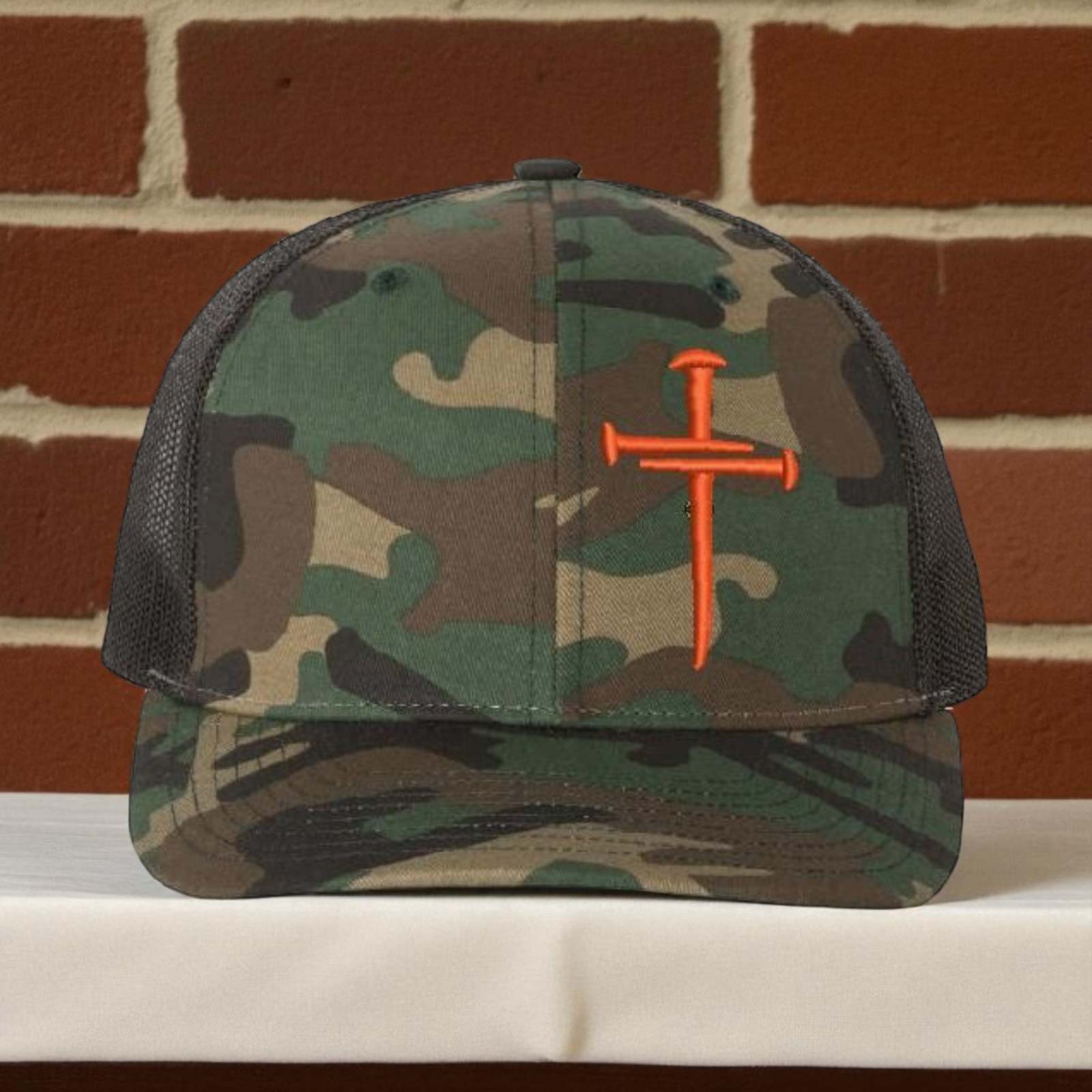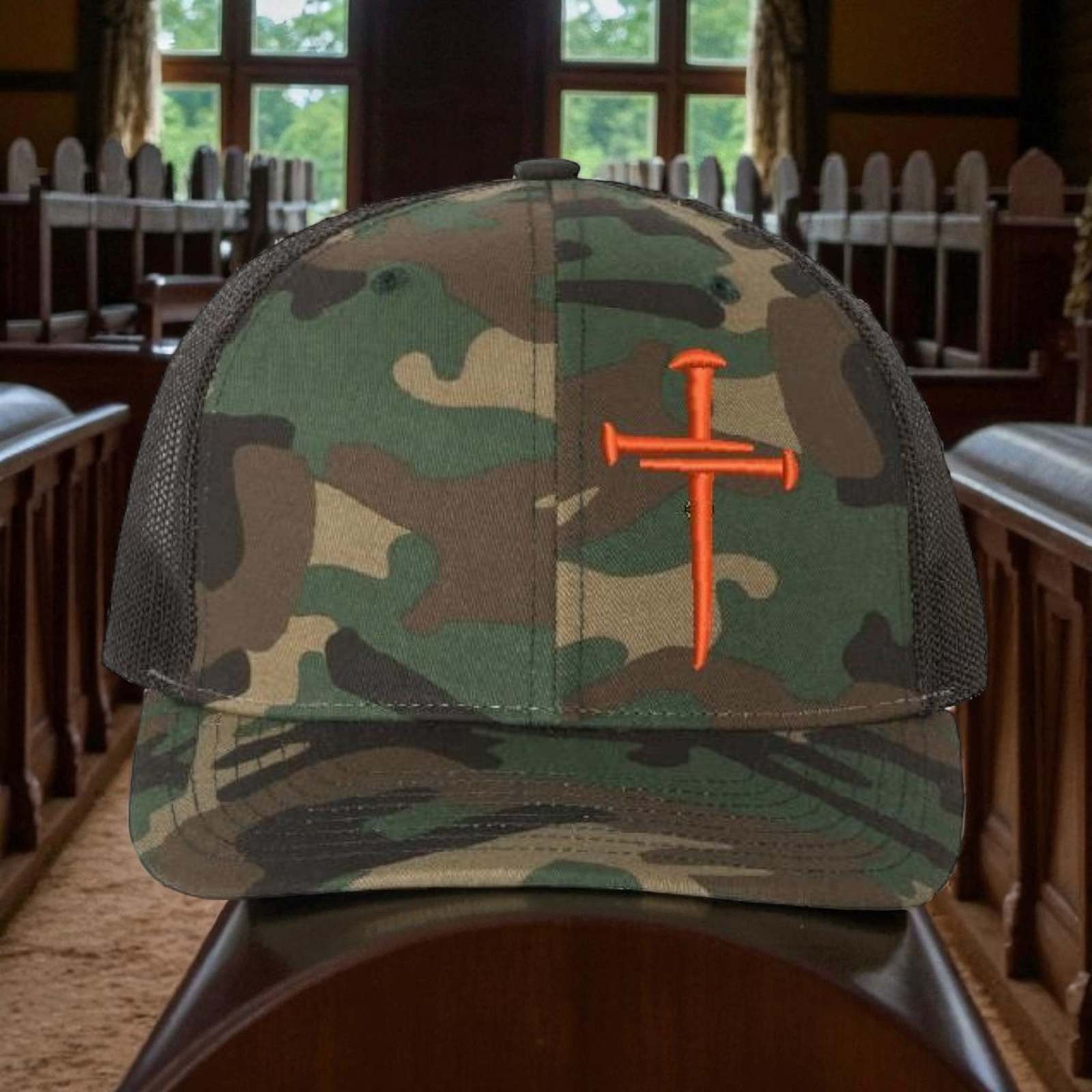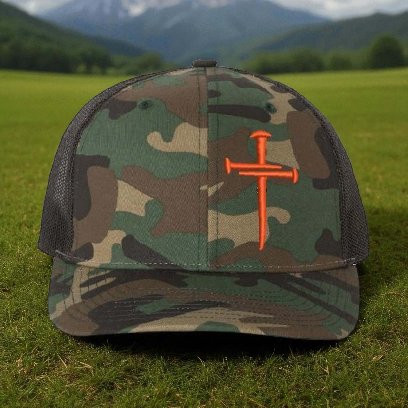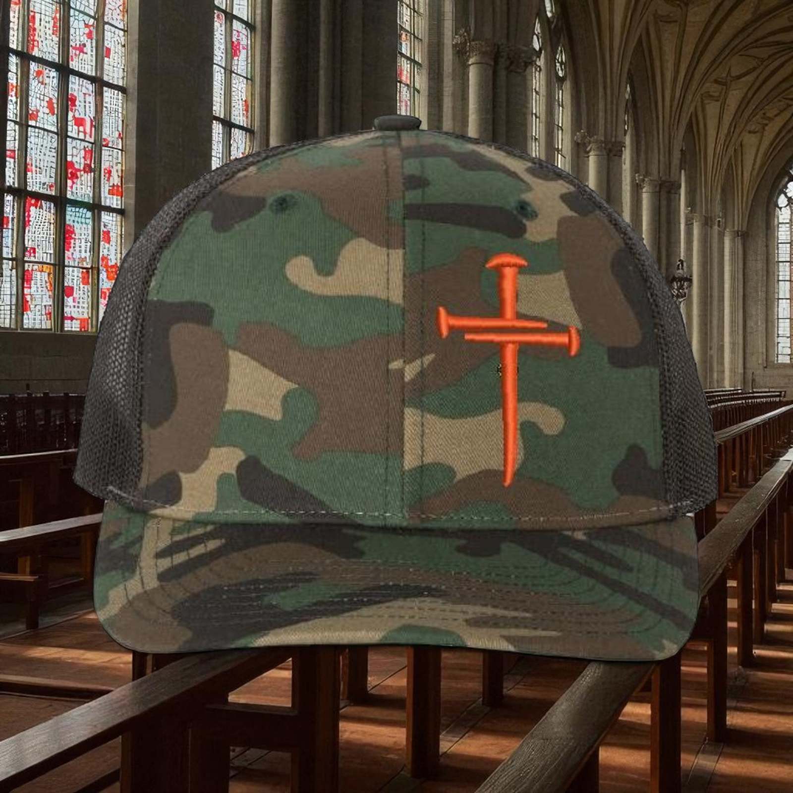 - Jesus Christ Christian 3 Nail Cross Camo 112 Mesh Back hat & Challenge Coin