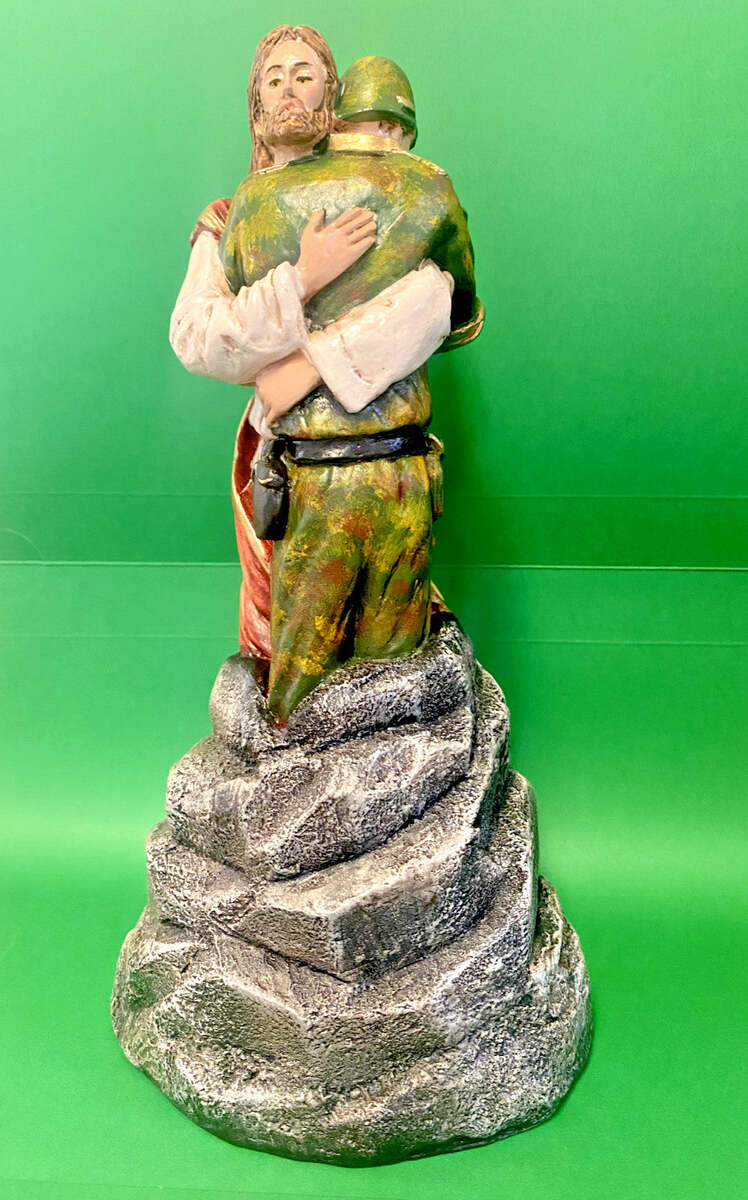- Jesus Hugging a Soldier, Hand Painted 9.25" Statue, New from Colombia #L022