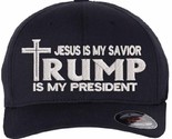 Jesus is my savior Trump is my President Navy Flex Fit Fitted Embroidered Hat