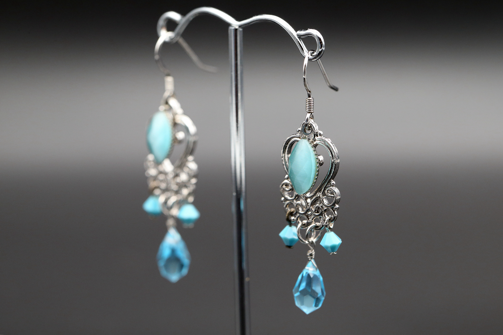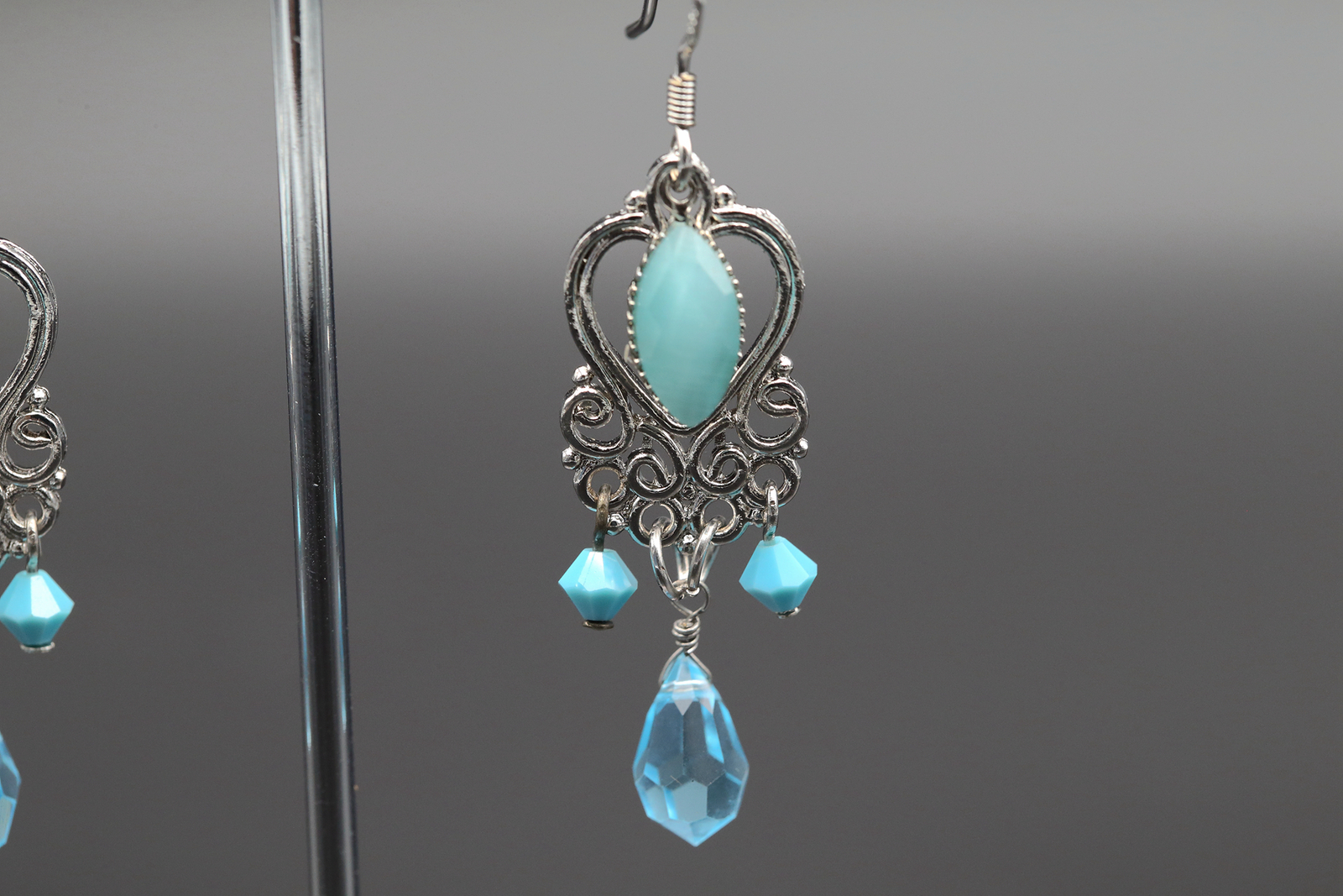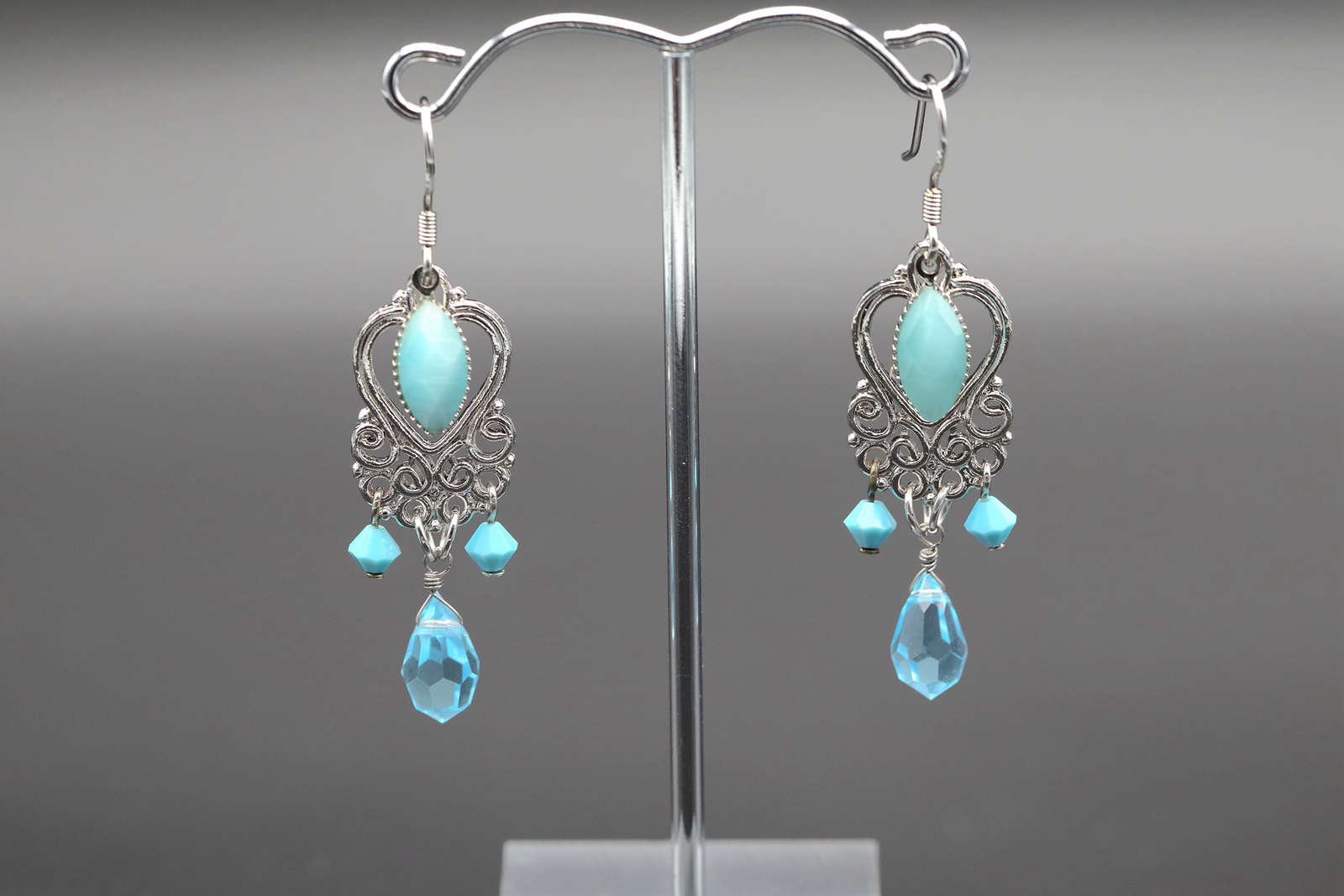 - Jewdi Sky Blue Synthetic Cat's Eye Handmade Earrings (E06S094)