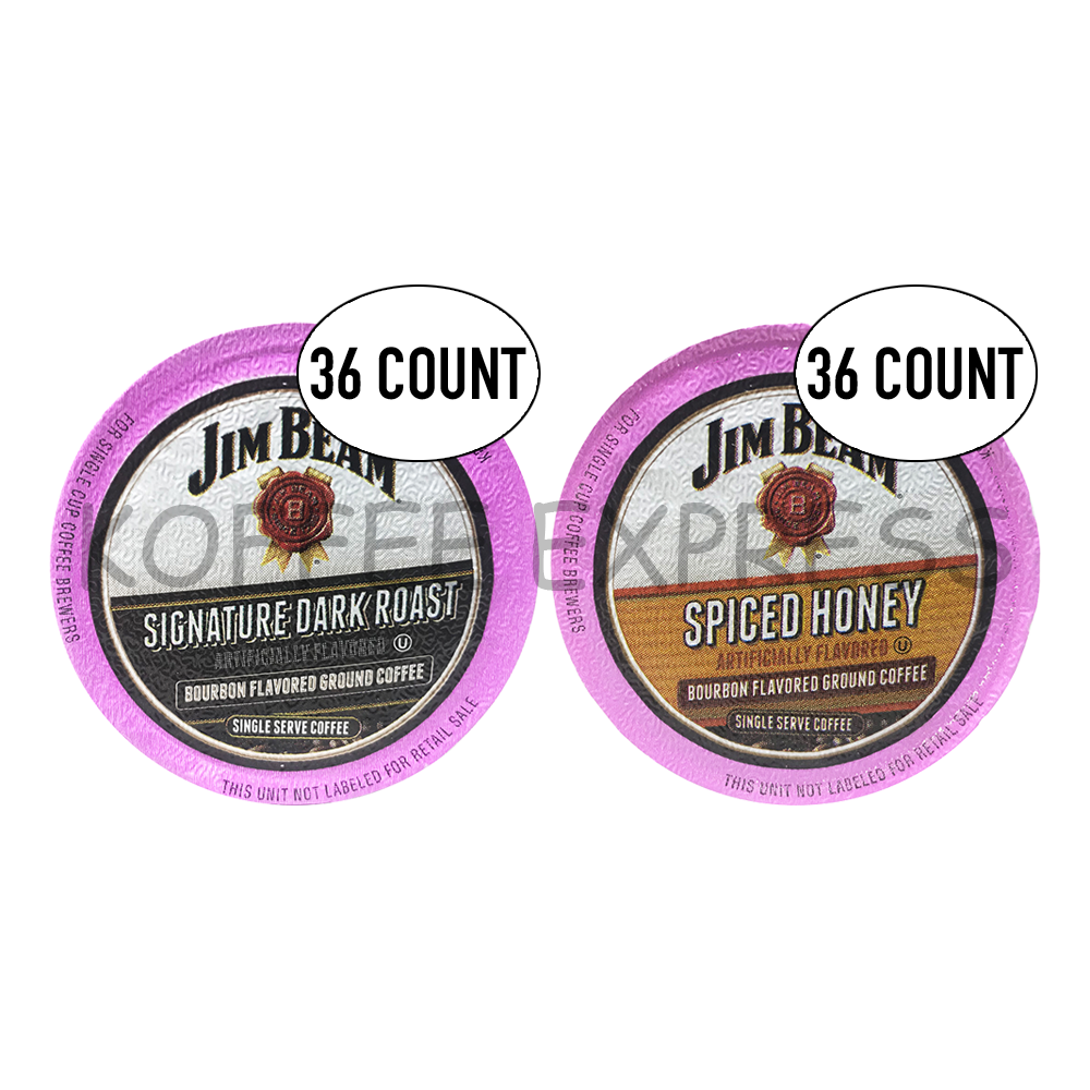 - Jim Beam Coffee Single Serve Cups, Dark Roast and Spiced Honey, 36 cups each